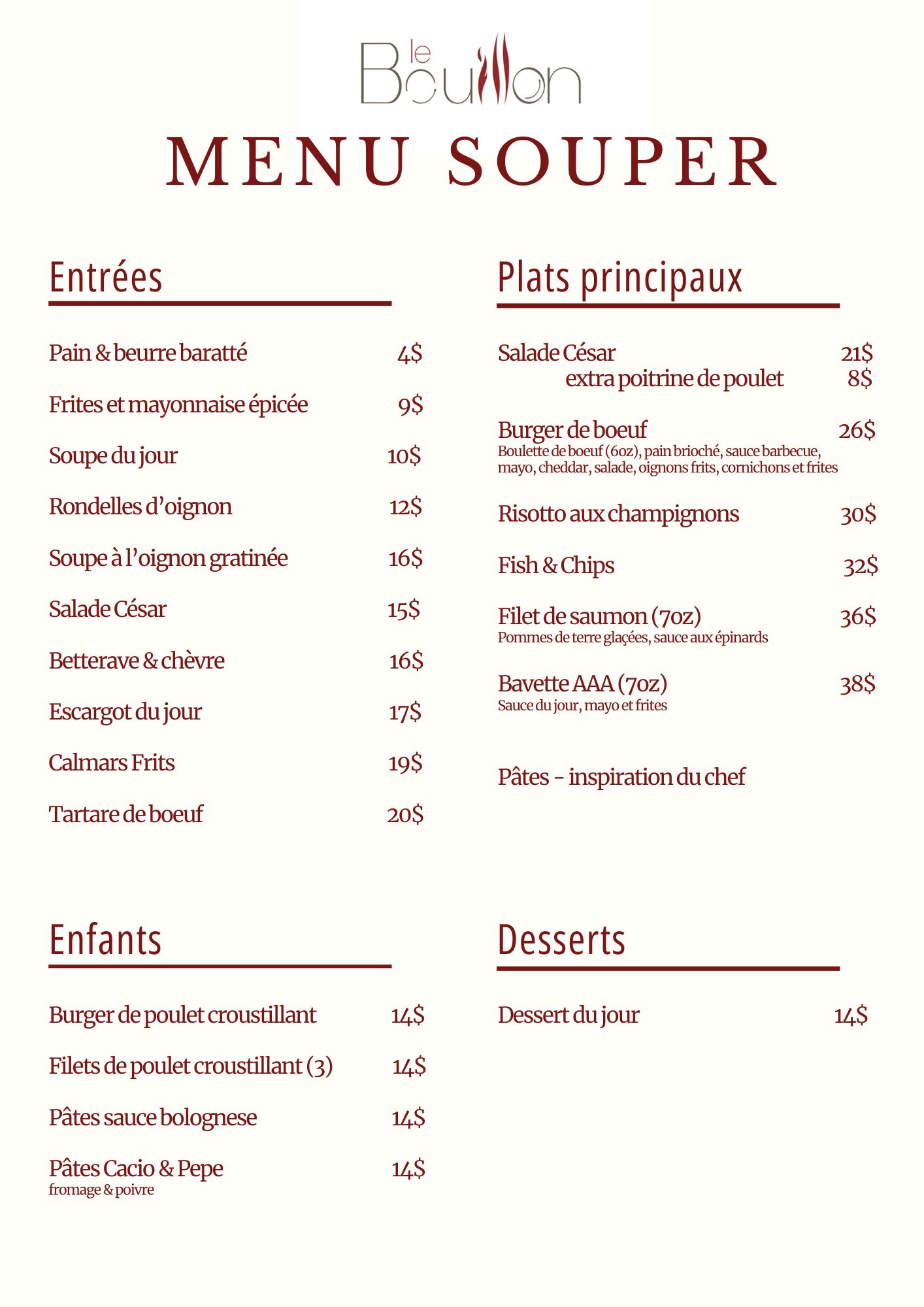 HORAIRE Jeudi – Vendredi – Samedi Souper dès 17h – sur réservation
